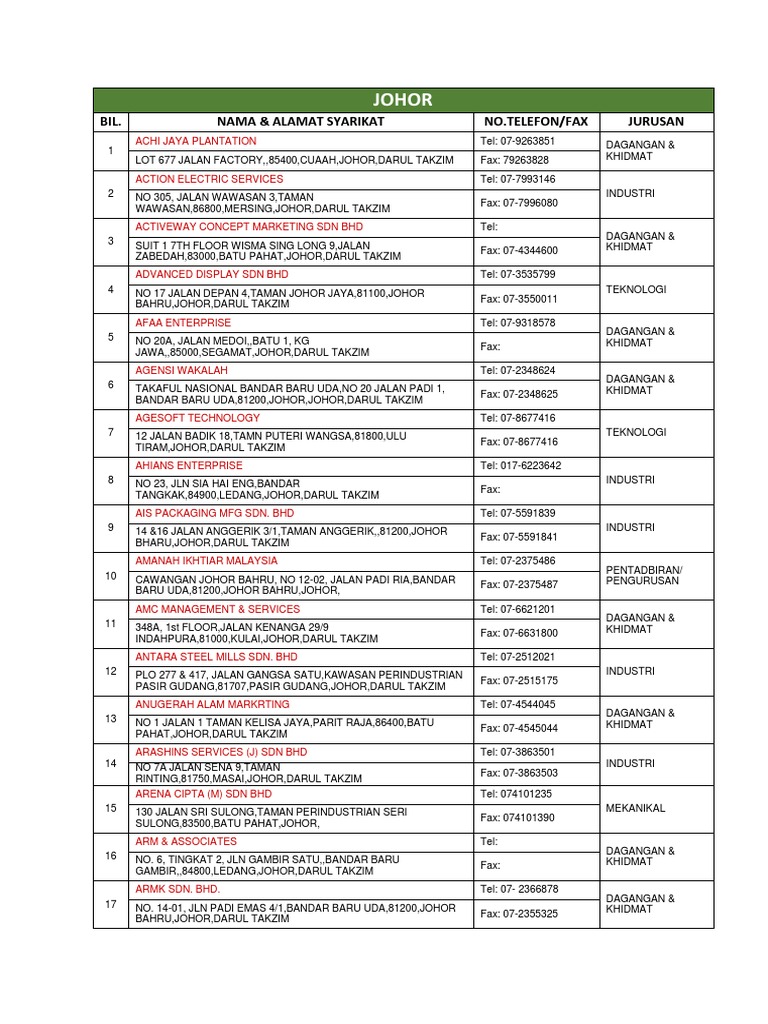 Senarai Nama Syarikat Di Johor Pdf